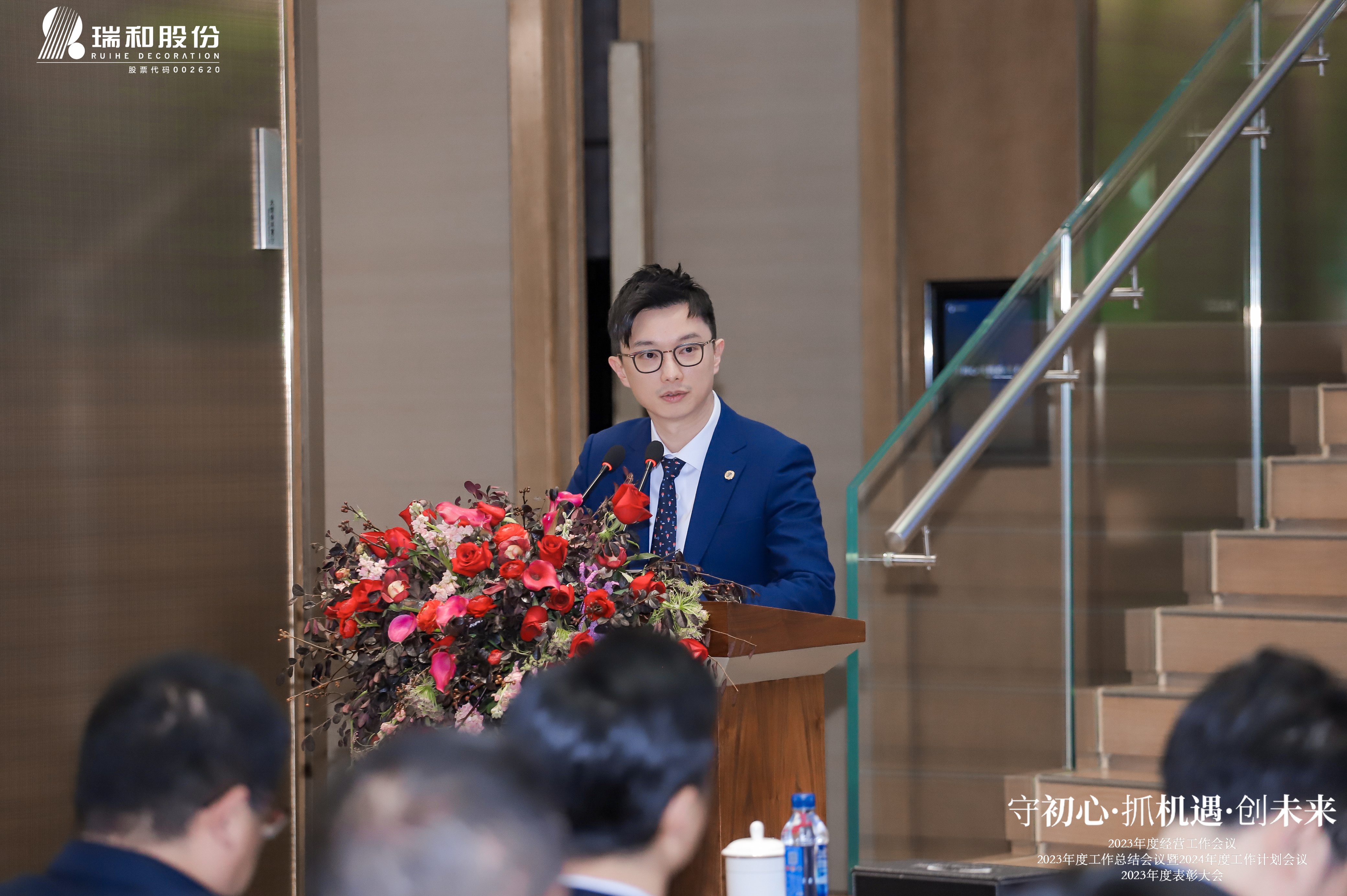 李冬陽總裁就瑞和股份2023年工作做了全面總結。在2023年,瑞和股份堅持拓展“增量”的同時,服務“存量”;強化了光伏項目現場管控,有力支撐光伏業務的全面鋪開與縱向深入;堅持技術創新及運用,第四次獲得國家高新企業認證。他表示,在2024年,瑞和股份要優化業務結構、拓展光伏領域、精細化工作管控,充分適應市場變化;布局存量時代,實現逆流而上,做精營銷策略、增加市場觸點、創新與各方的合作模式、縱深推進光伏板塊,并進一步探索、發揮瑞和裝配式、BIM的技術優勢。最后,他希望所有瑞和人增強定力,應對挑戰,在變局中尋找破局的機會,開創瑞和發展新格局。