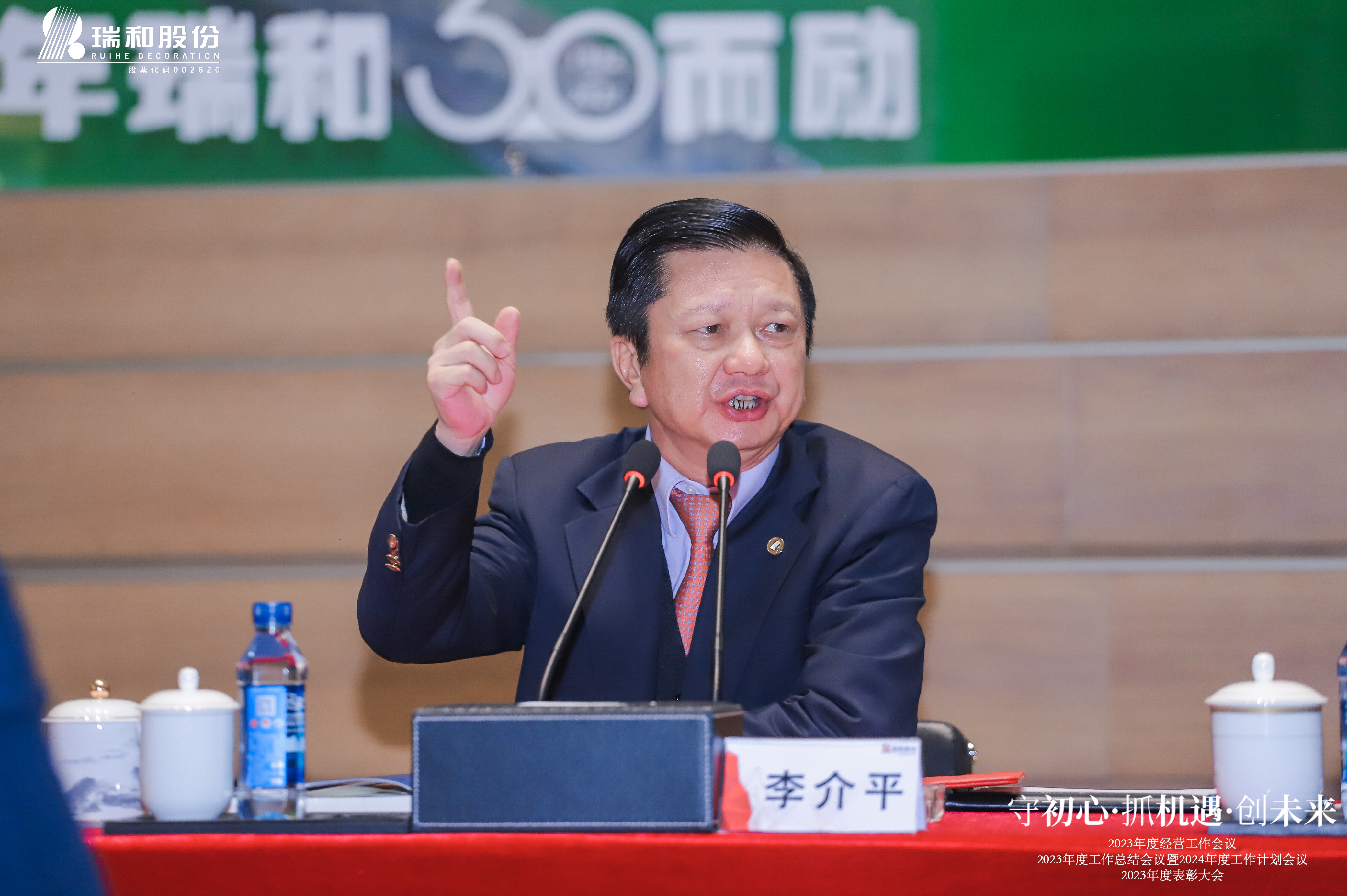 創始人、董事長李介平在總結發言中表示,建筑裝飾行業始終是一個資源永續、基業常青的行業,長期看好的基本面不會改變。瑞和股份在2024年將全力對舊改、新基建、新能源等的巨大價值進行深入探索,加深全國一盤棋部署,努力開拓合作渠道,形成開拓市場的攻堅合力;持續加大瑞和技術創新力量,激活更強大的核心競爭力;在清潔能源賽道上,繼續向深耕耘,推動瑞和“雙主業”未來發展,做好現有整個光伏團隊的高質量發展,加強建立戰略合作伙伴關系,拓寬優質新基建施工業務。他表示,面對看似更為復雜的市場環境,瑞和股份有能力并且有意愿,聯和更多力量,在各項政策加持下,開辟出一條更新、更長的賽道。并希望與所有合作伙伴一起,深化務實合作,以共進為動力、以共贏為目標,走出一條互信共贏之路。