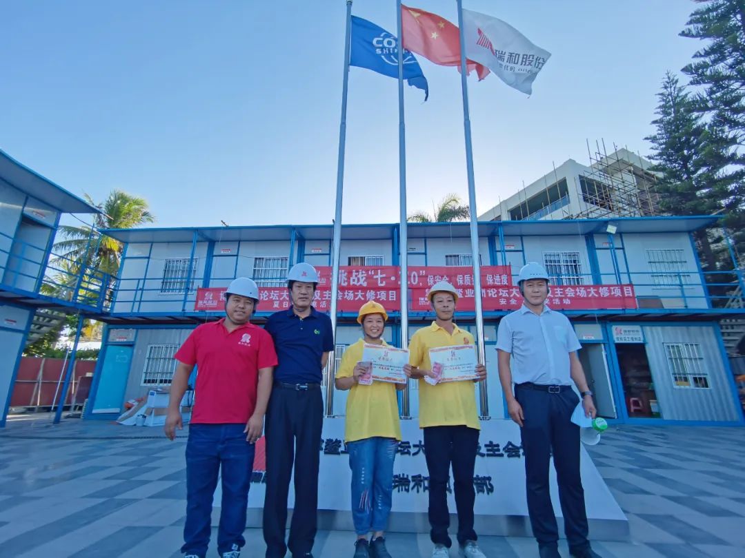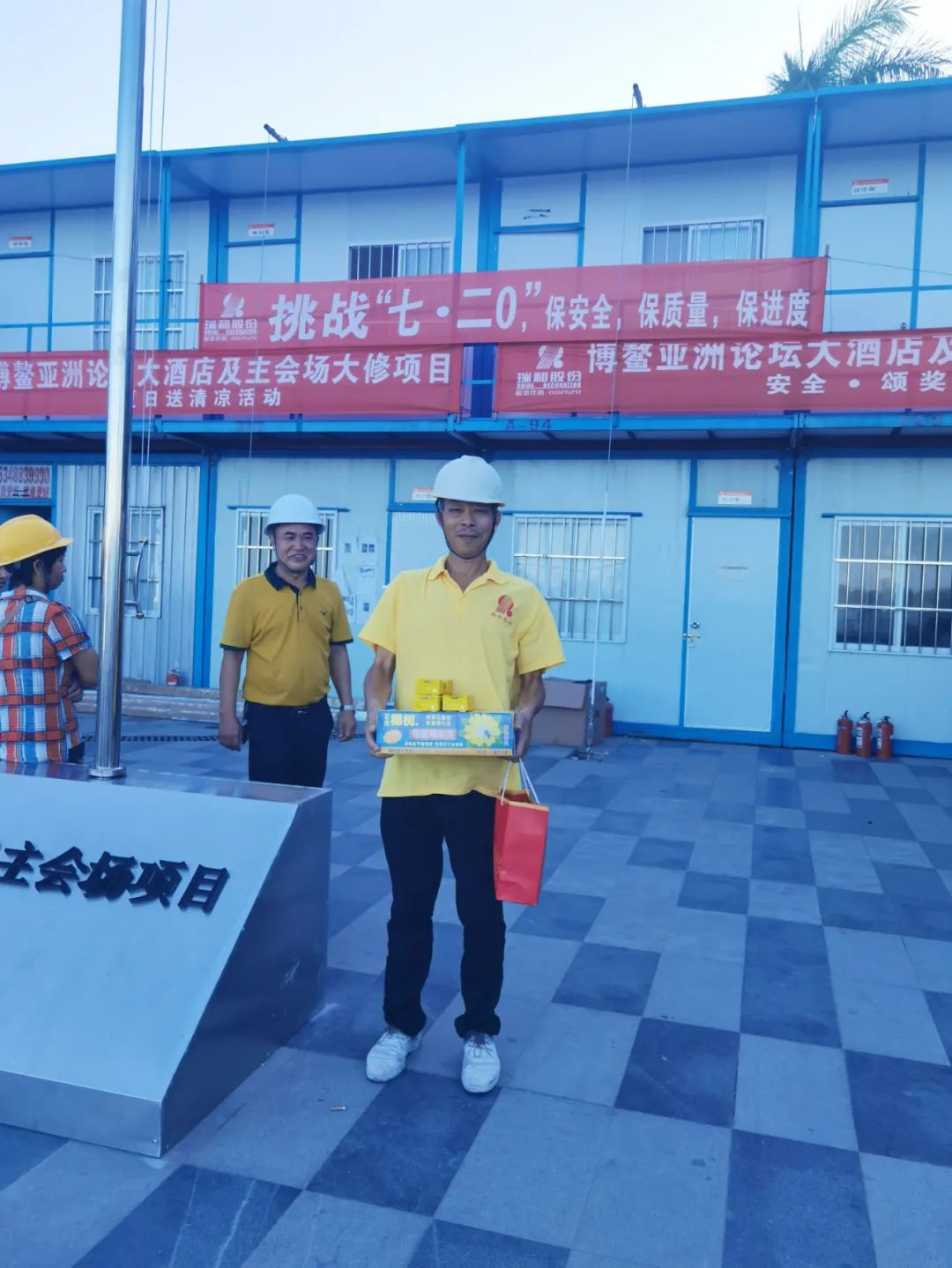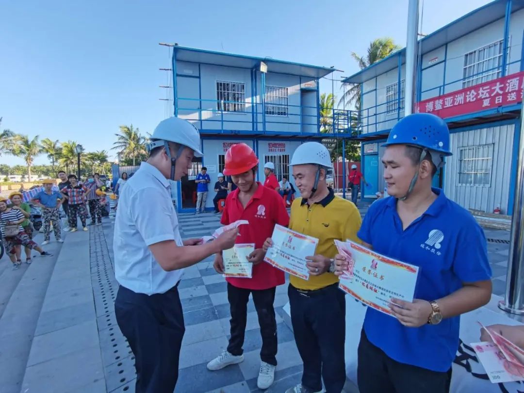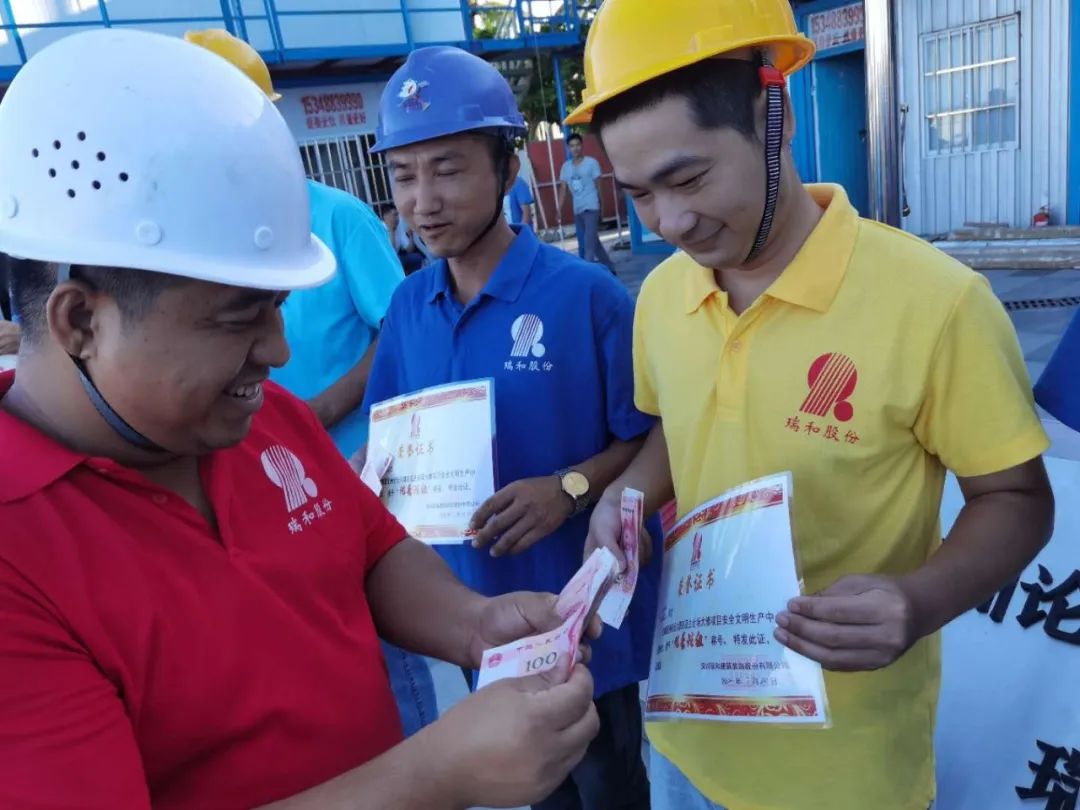 為保障施工人員身心健康,促進項目安全施工,712日,瑞和股份為博鰲項目辛勤工作的工人們送去清涼并對優秀班組進行了獎勵。